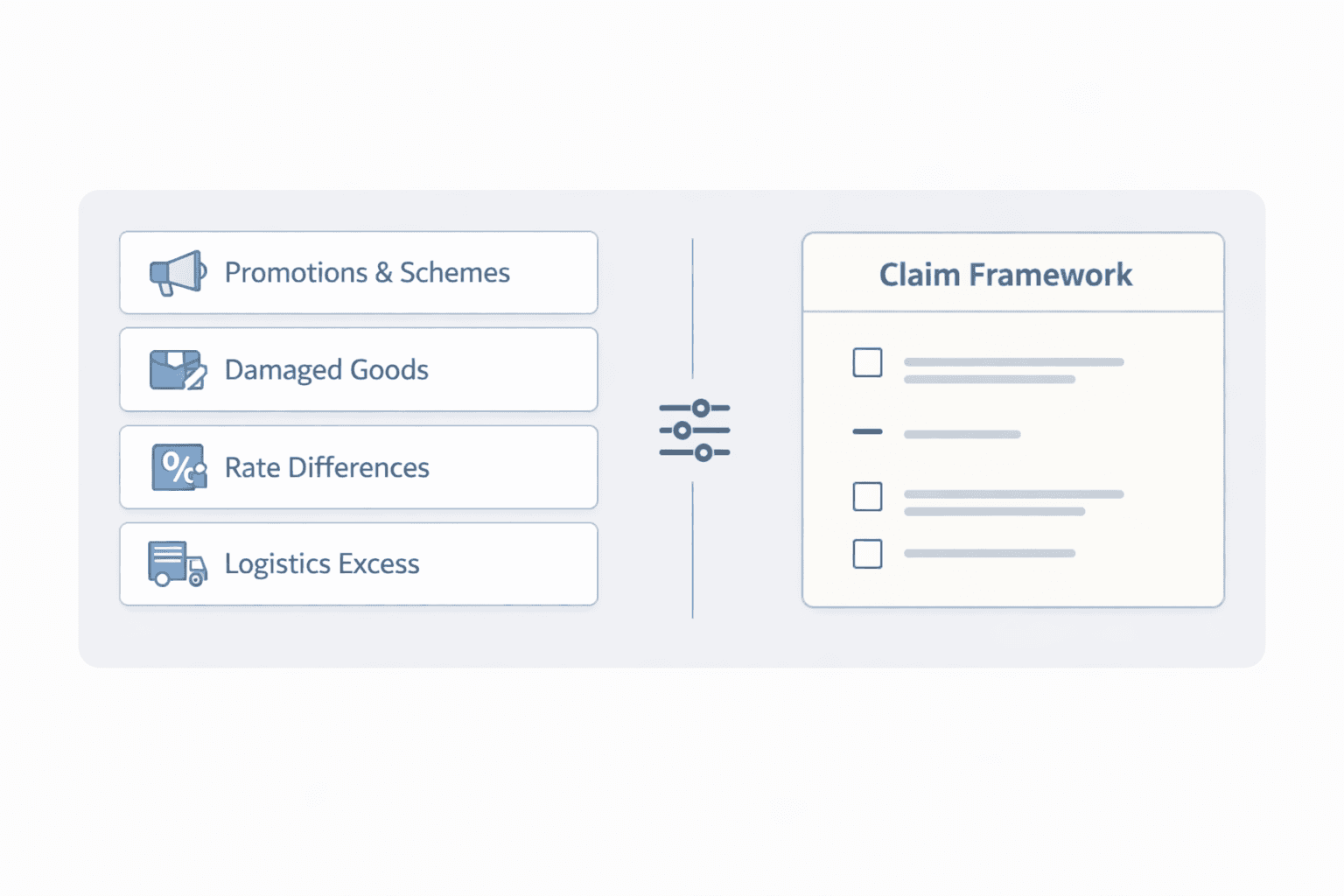 Define claim types aligned to your business realities - promotions and schemes, damaged goods, rate differences, logistics excesses - without custom development.