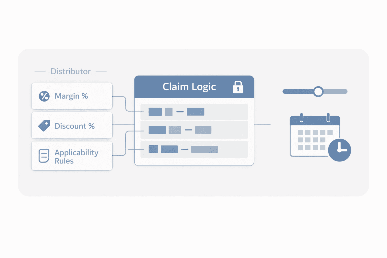 Maintain distributor-level margins, discounts, applicability rules, and claim calculation logic as governed masters — adjustable as contracts and commercial terms evolve