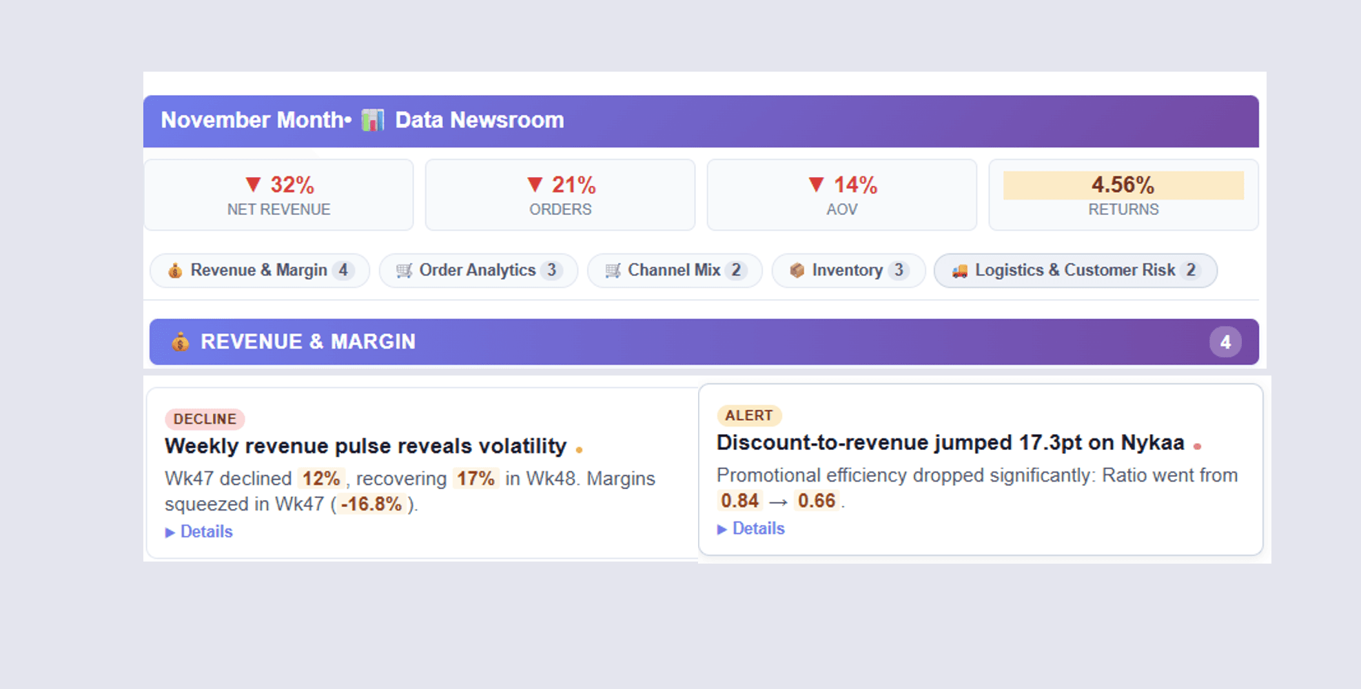 Ask questions in business language and get contextual answers - without raising tickets to data or tech teams. Understand why numbers changed, not just what changed.